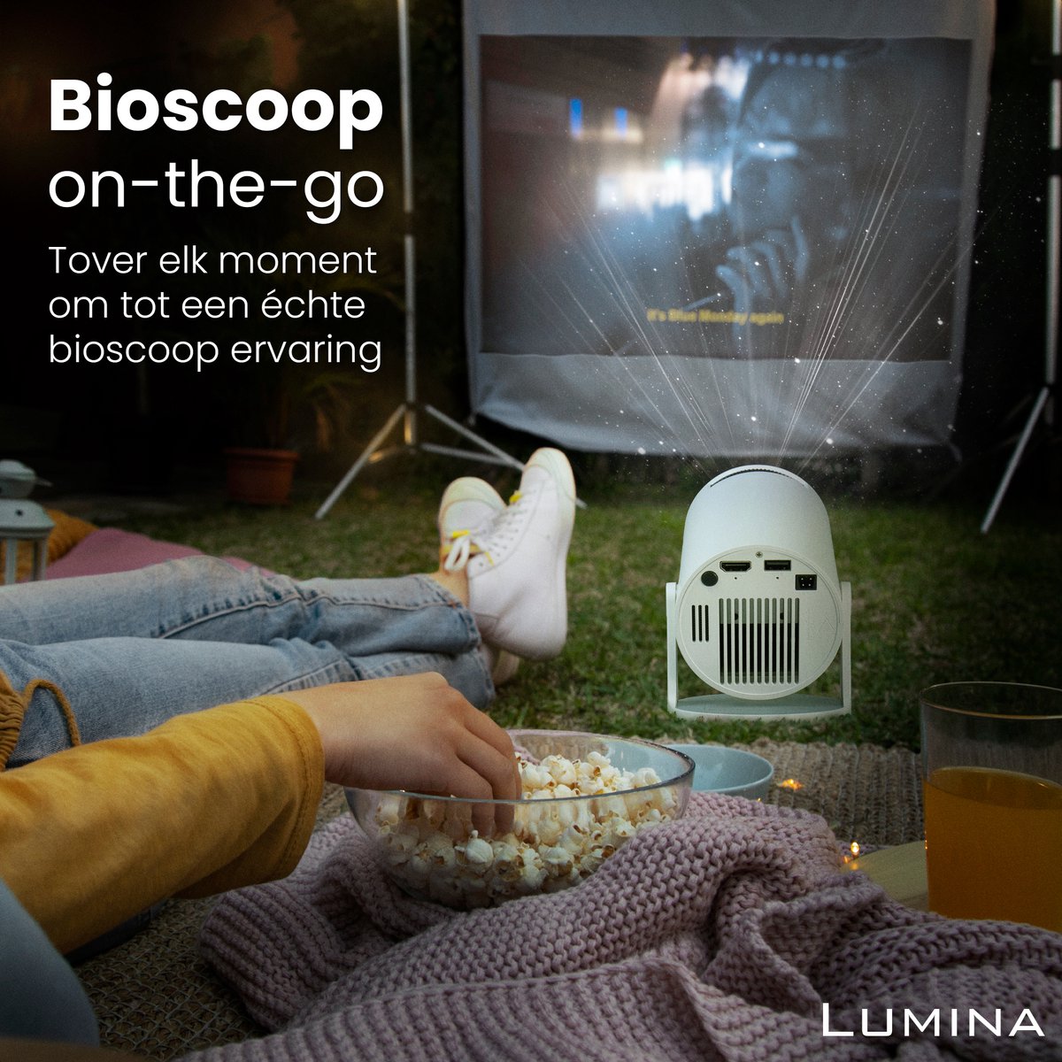 Novabeam® Pro Mini Beamer 2025 – Smart Projector met 4K-ondersteuning – Voor iOS & Android - Android 14 - WiFi 6 & Bluetooth 5.4 – Thuisbioscoop – Wit